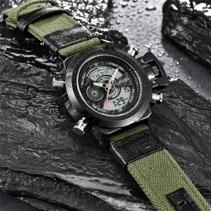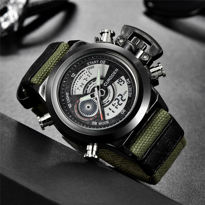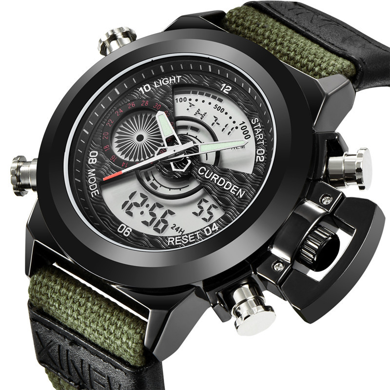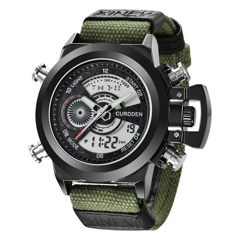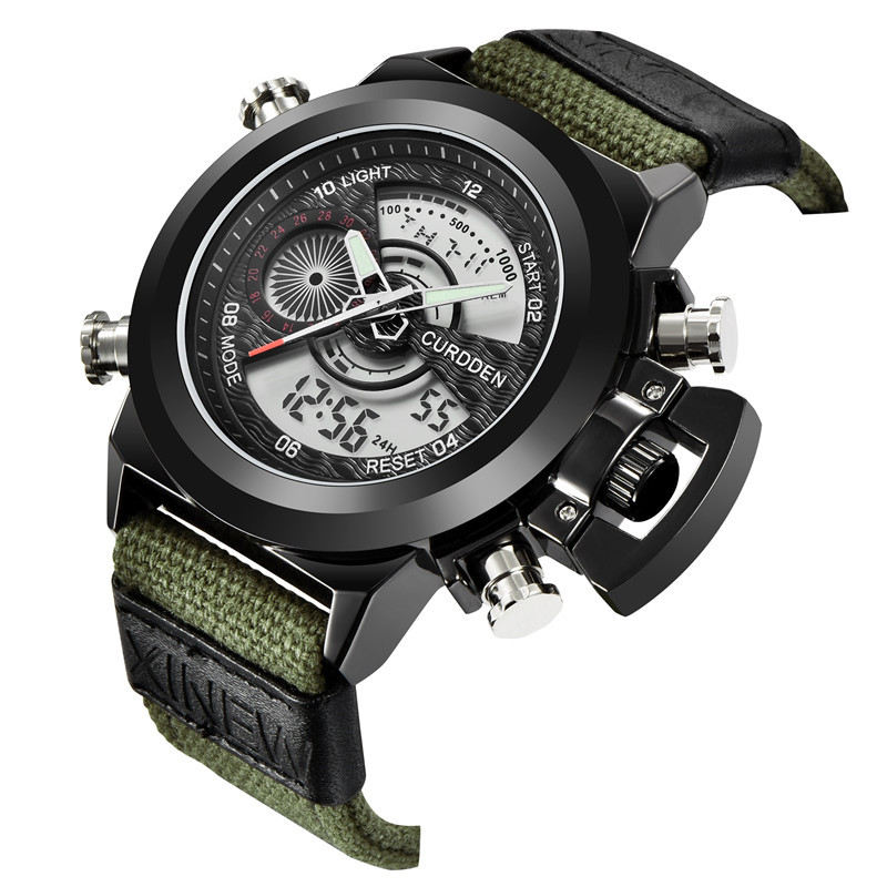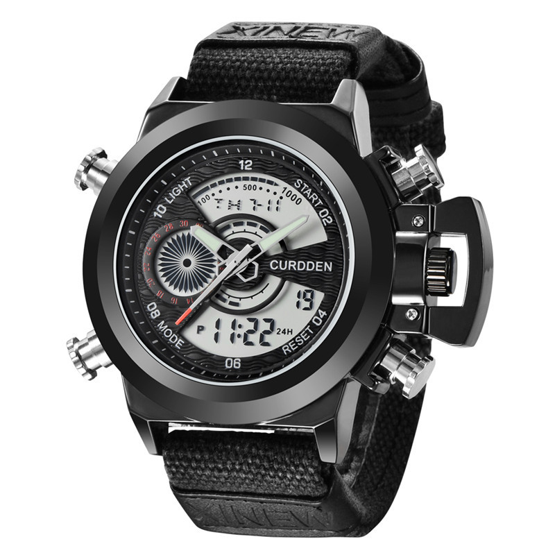 Relógio eletrônico de exibição dupla com cinto de nylon